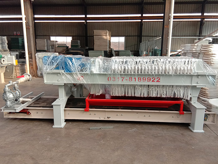 板框式壓濾機主要由止推板(固定濾板)、壓緊板(活動濾板)、濾板和濾框、橫梁(扁鐵架)、過濾介質(濾布或濾紙等)、壓緊裝置、集液槽等組成,其中過濾介質和集液槽由用戶自備。