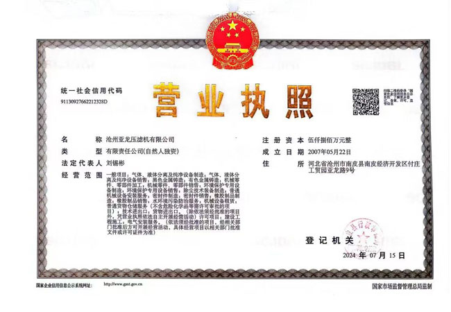 公司名稱(chēng):滄州亞龍壓濾機(jī)有限公司 公司地址:河北省南皮縣付莊工業(yè)開(kāi)發(fā)區(qū) 電話(huà):0317-8189922 傳真:0317-8189923